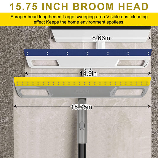 Rubber Floor Brushes Pet Hair Broom with Squeegee150 CM Adjustable Handle, for Hardwood Floor, Tile Artificial Grass Cleaner Brush includes One Microfiber Cloth Dusting