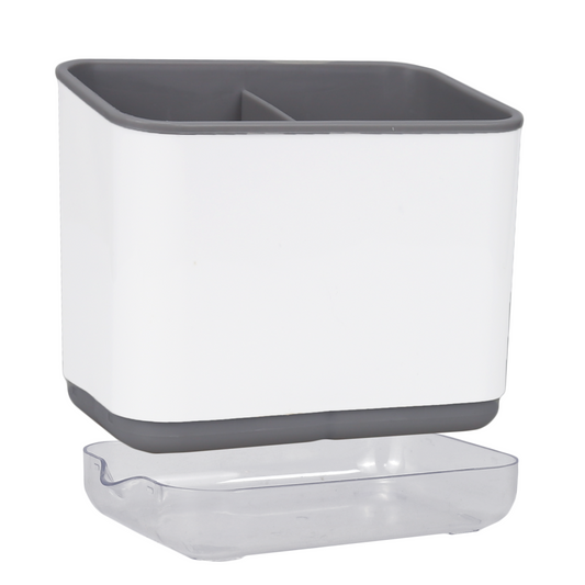 Sink Counter Caddy, Dish Sponge Holder, Kitchen Sink Sponge and Brush Holder, Plastic Dish Scrubber Organizer with Drain Tray, White