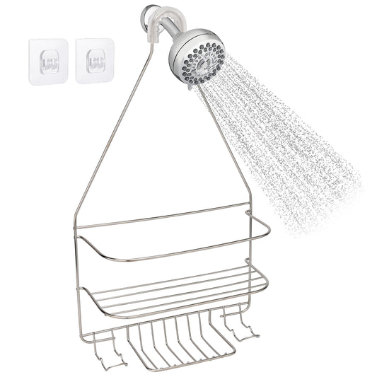 Shower Caddy Over Shower Head, Hanging Shower Organizer, Shampoo Rack and Soap Holder for Bathroom Storage, Silver