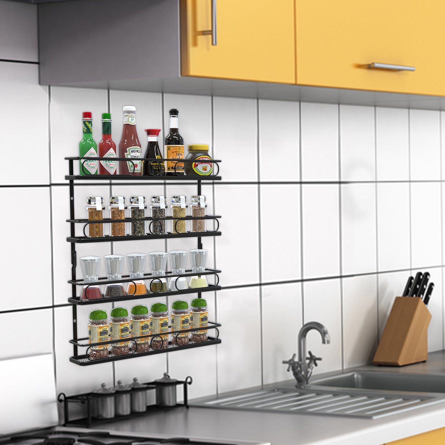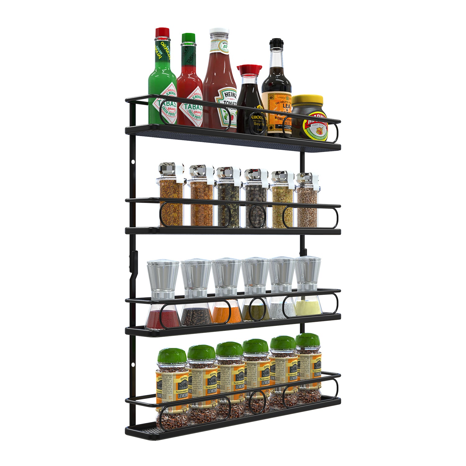 4 Tier Hanging Spice Racks for Wall Mount/Cabinet Pantry Door,Farmhouse Style Seasoning Organizer For Your Kitchen,Black