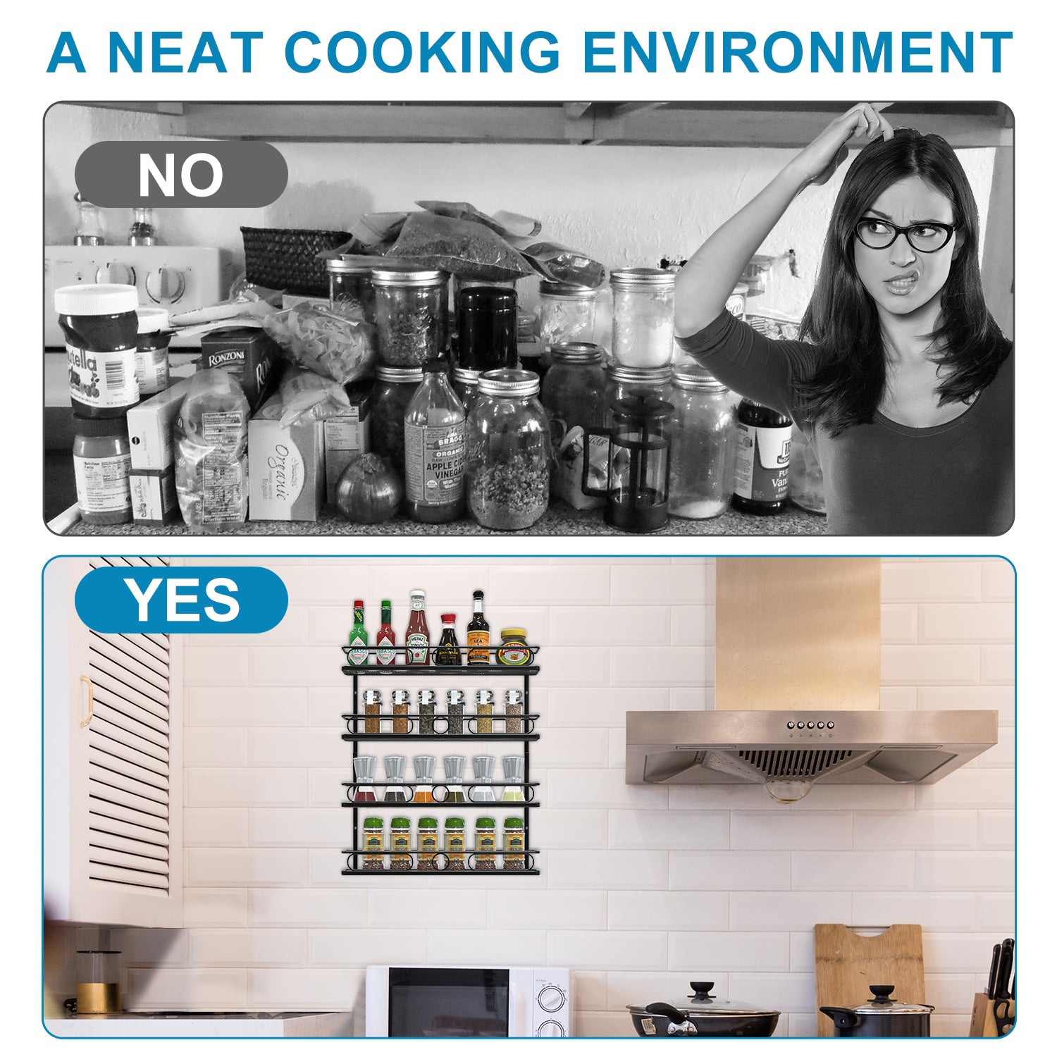 - 👍【Space Saving】Wall spice rack is a perfect solution to free up counter or cabinet space and keep them clear of clutter.No more digging through the cabinet to find that spice way at the back.