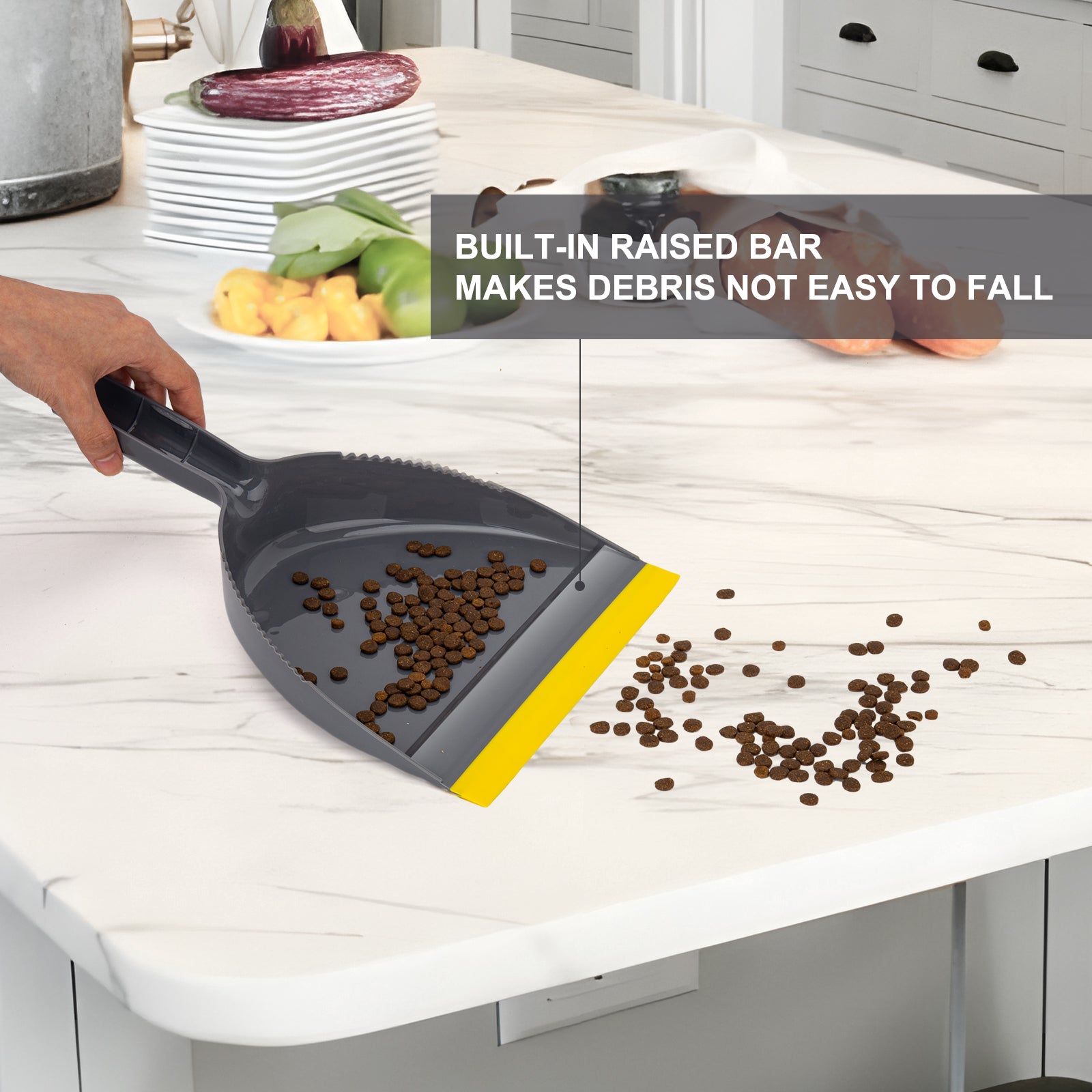- ⛲Multifunctional - brush and dustpan set small use in kitchen,office, bathroom, garage,couch, furniture, countertop, car interior ,keyboard,drawer or any surface, it sweeps dust, fur debris,cat litter,pet food,paper scrap