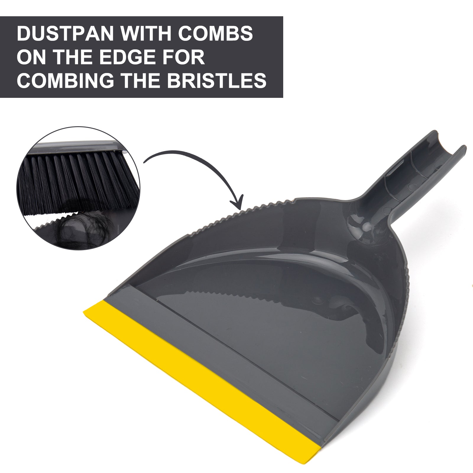 - ⛪Durable and reusable-Small rubber dustpan and brush sets is made of dense and durable bristles, it won't scratch cleaning surface, comfortable and nonslip handle is easy to hold.