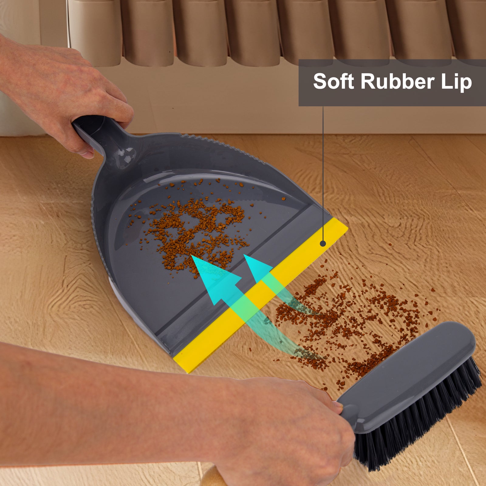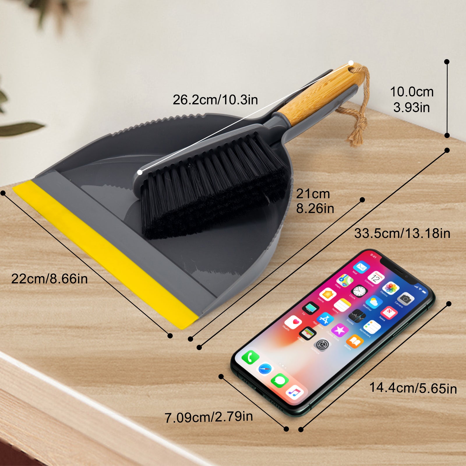 - ⛲Stylish design-Mini dust pan combo with soft rubber lip flush with the floor cleaning any surface and allows for maximum pickup, while built-in raised bar makes debris not easy to fall.