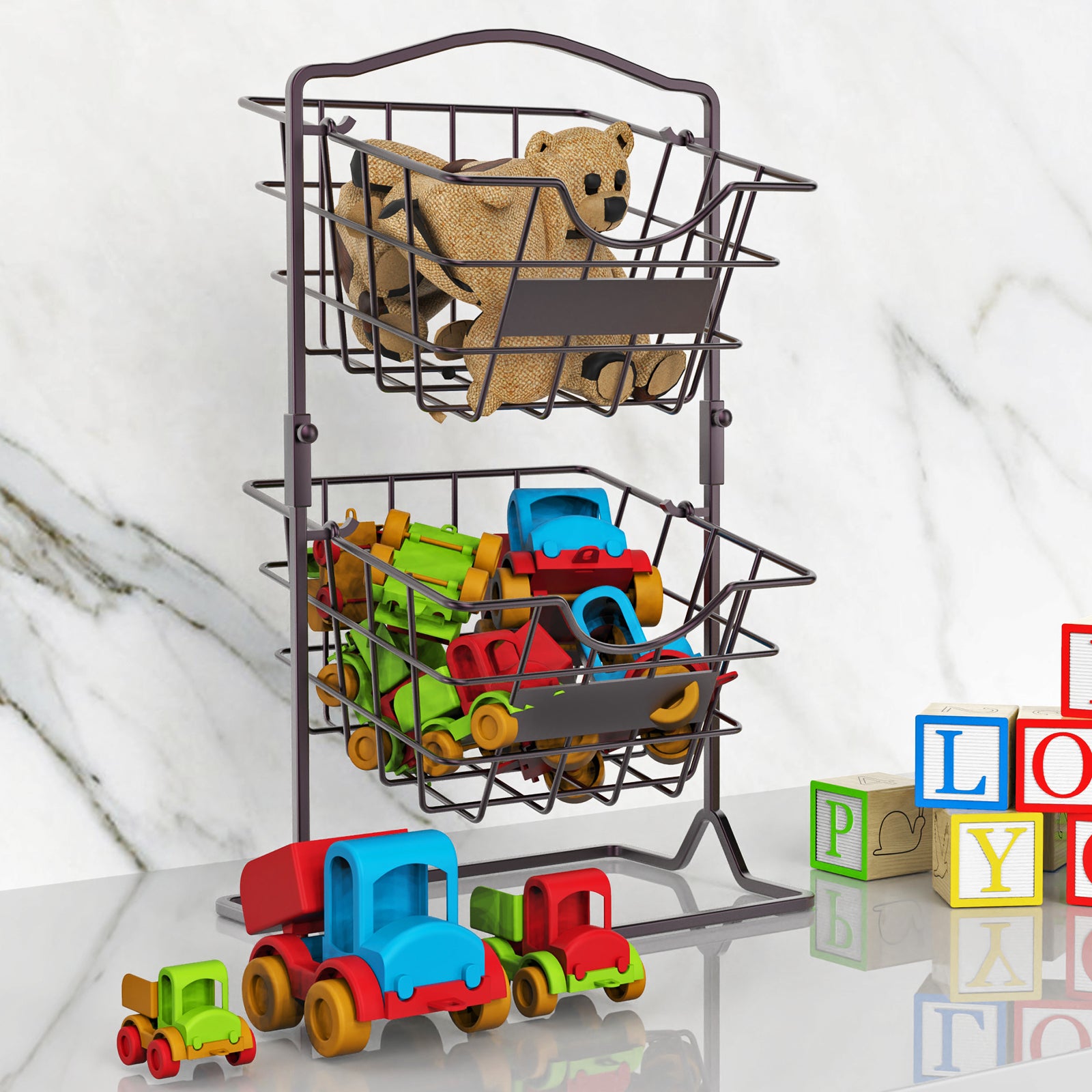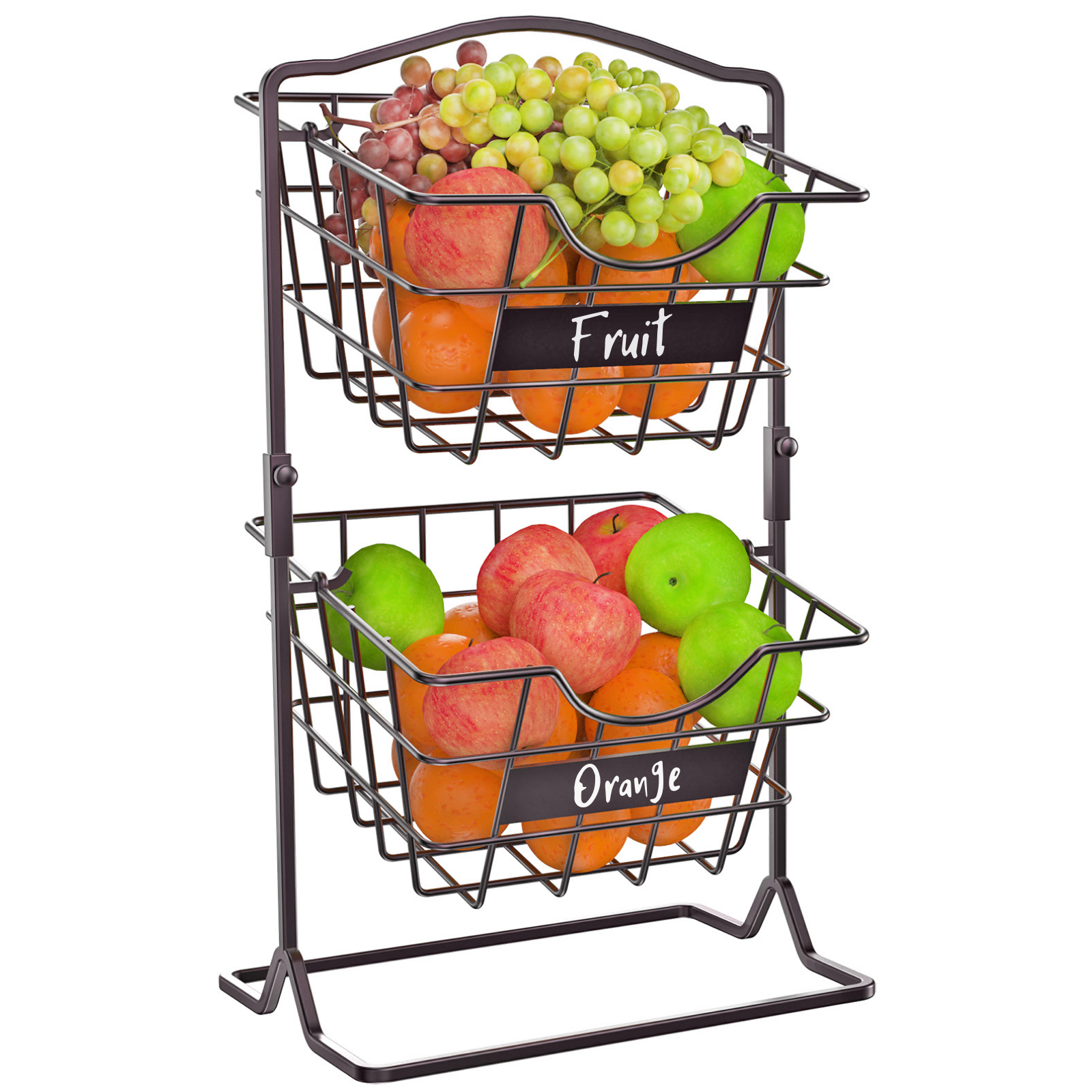 - 【Easy to Put Together】 No tools required, just two little screws to fit this countertop fruit basket together. All you need to do is screw the top bracket onto the lower piece by hand and then put the baskets in. The 2 wire basket can be separated for different uses depending on your space and preferences.