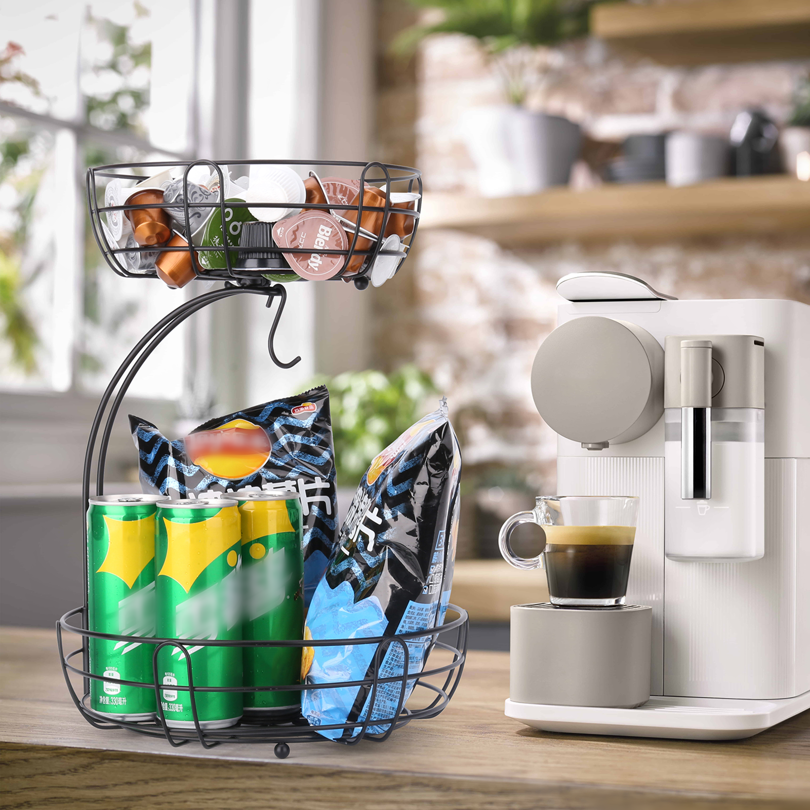 - 【Endlessly Versatile】 Vegetable basket can be used tiered or separated into two standalone baskets, and the bowl-like shape also ensures you can easily access the fruits without any hassle. You can also use this fruit bowl to serve bread, snacks, produce, coffee pods, and many more.