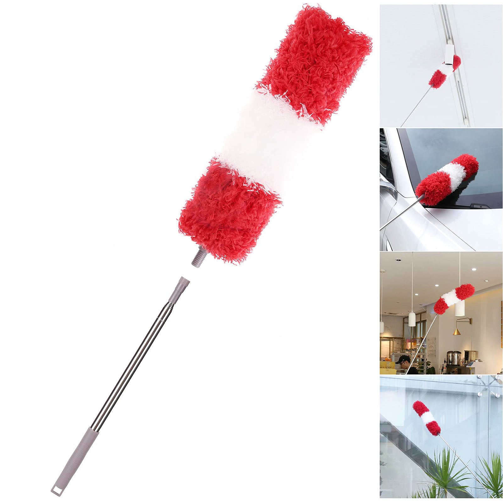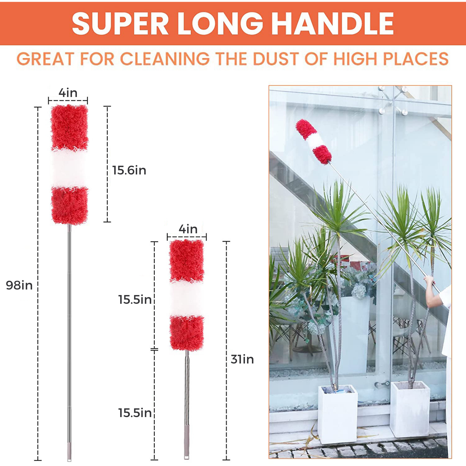 Microfiber Dusters for Cleaning, 98'' Ceiling Fan Duster with Extension Pole, Reusable Extendable Feather Duster, High Ceilings Duster with Long Handle, Red