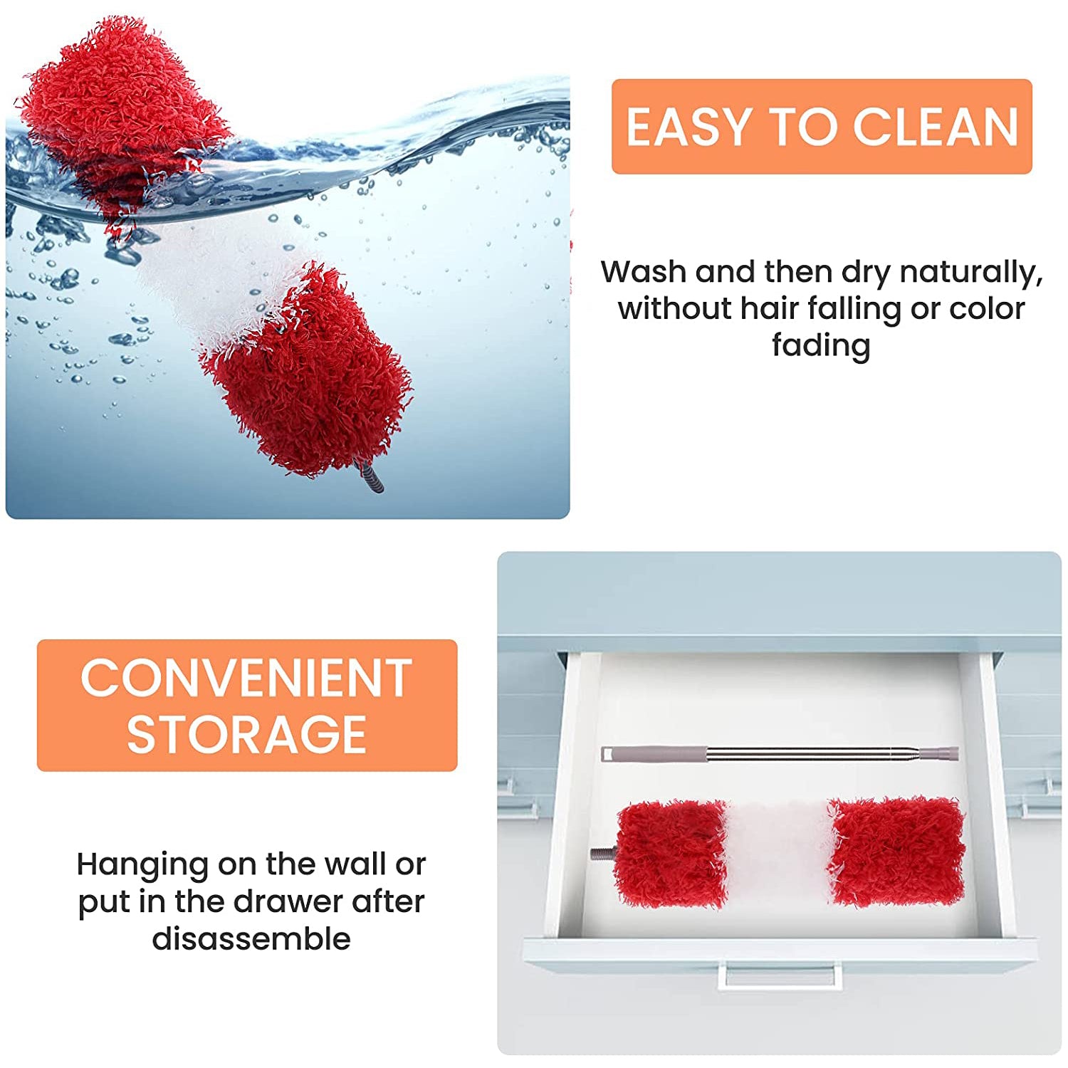 - 【Efficient Cleaning】 The split fiber of this telescoping duster can absorb all kinds of particles, so you can actually pick up the dust and dirt as you clean instead of pushing it around. Easy-to-bend long duster can fit most surfaces.