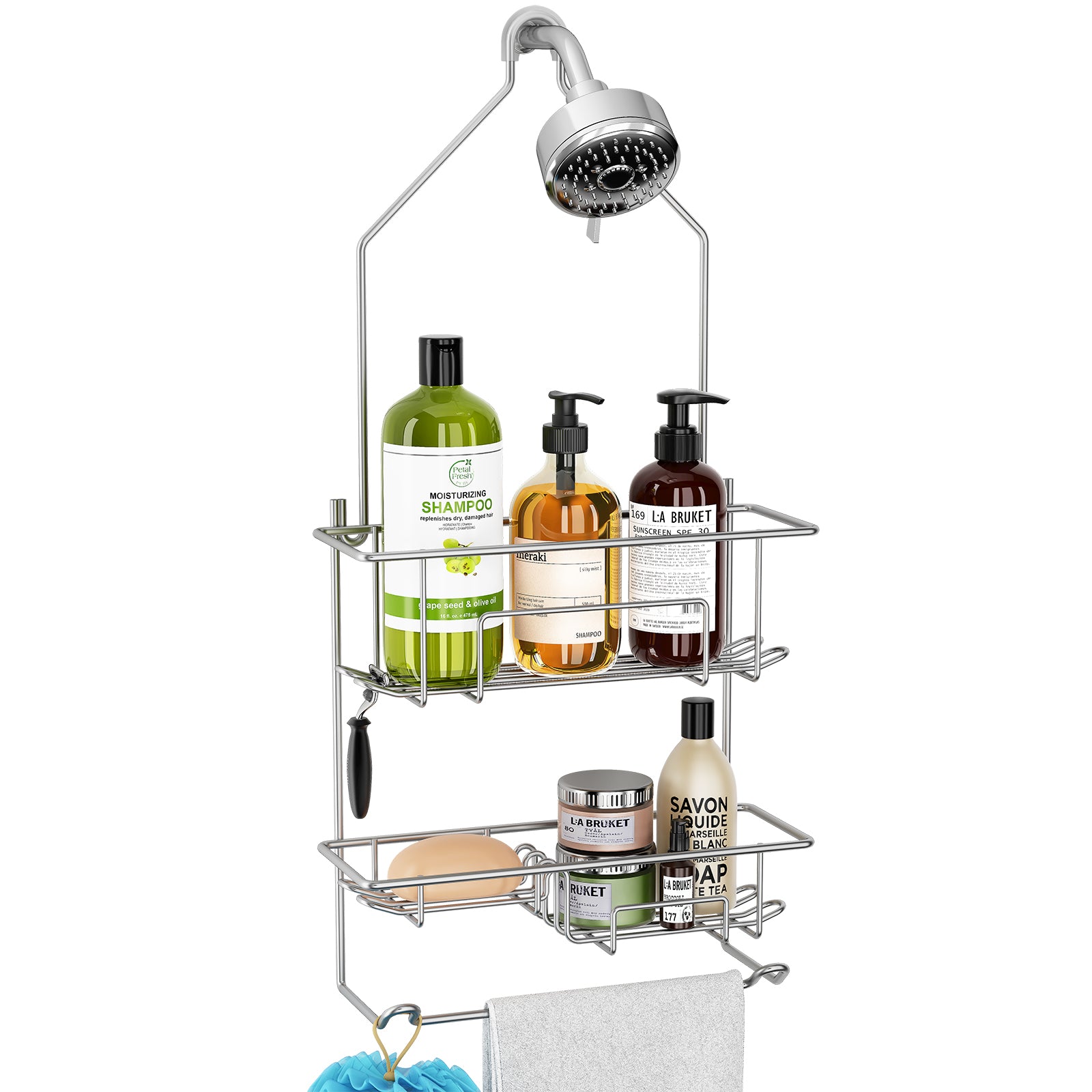 Shower Caddy over Shower Head, Hanging Shower Organizer Rack, Bathroom Caddy for Shower, Rustproof Shampoo Holder Shelf, Silver