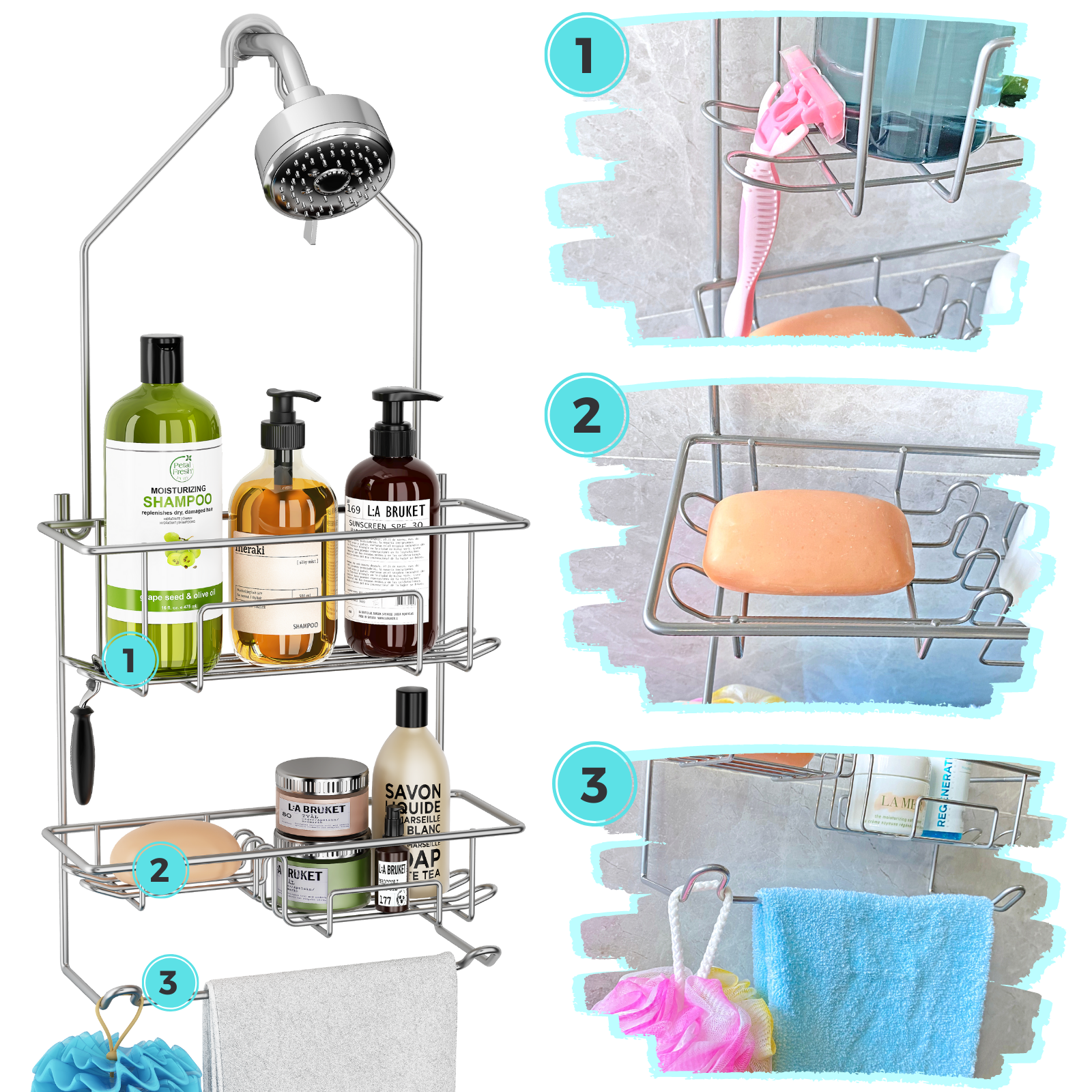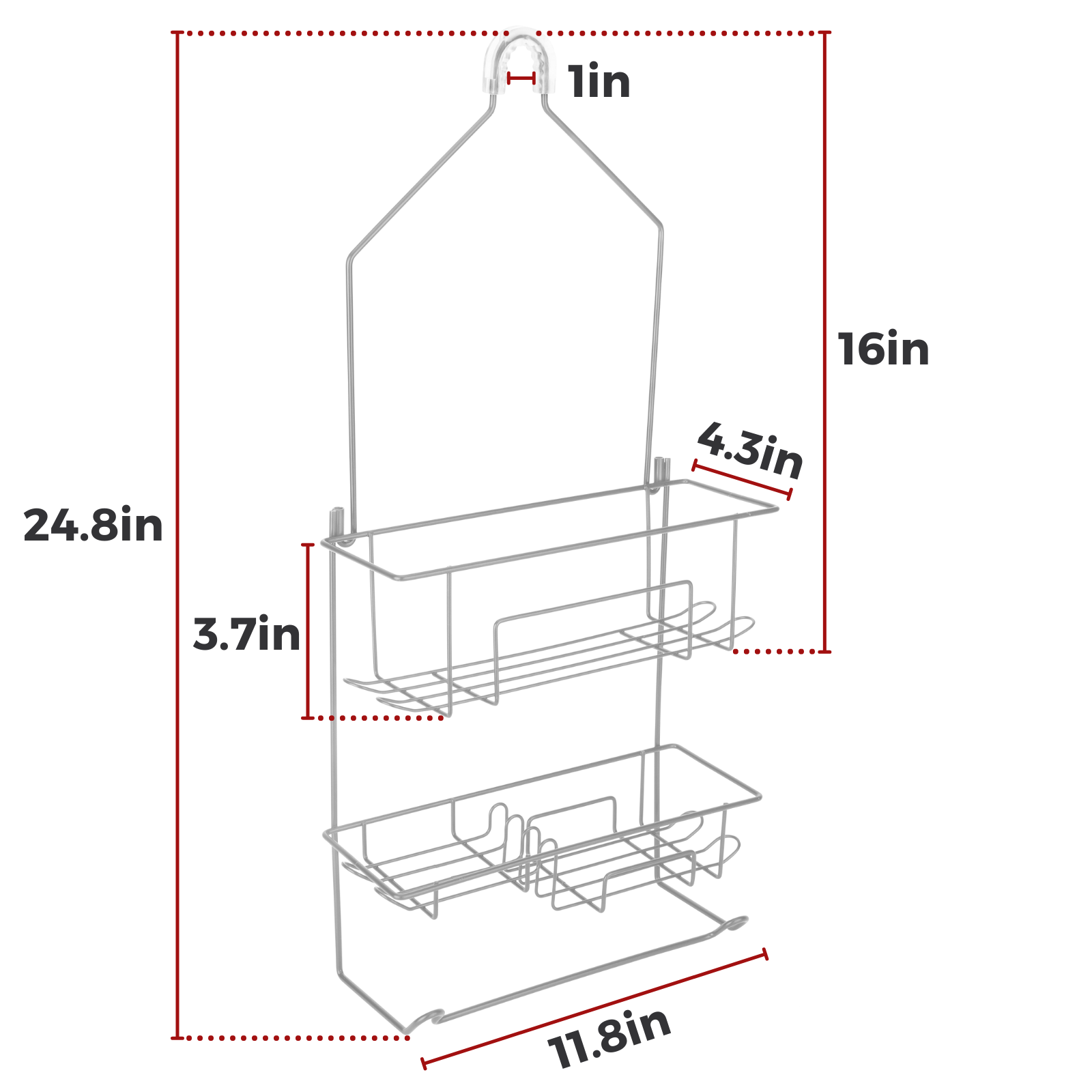 - 【Worry-Free After Sales Service】2 tier over shower head organizer measures 11.8''L*4.3''W*24.8''H, conveniently organize all your shower accessories. (Your 100% satisfaction is our NO.1 priority. If the shampoo holder for shower doesn’t meet your expectations, please contact us for a solution and you can return it at any time. Thank you!)