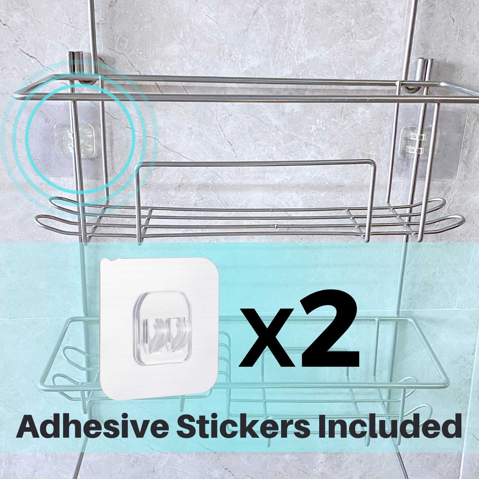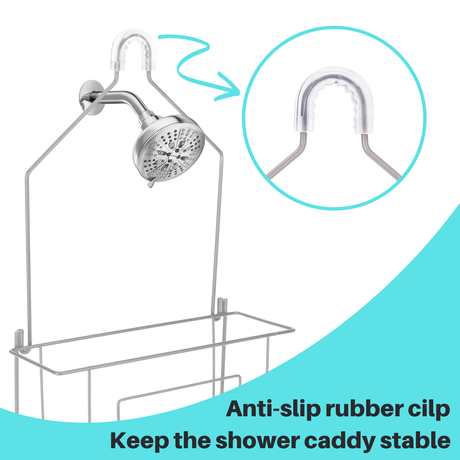 - 【Easy No Tool Installation】 Bathroom Shower caddy features a rubber clip to prevent slipping and protect the shower head from scratches, comes with 2 adhesive stickers instead of suction cups for a stronger hold and will not get knocked off balance as you take bottles. (Note: stickers can only be used on smooth surfaces.)