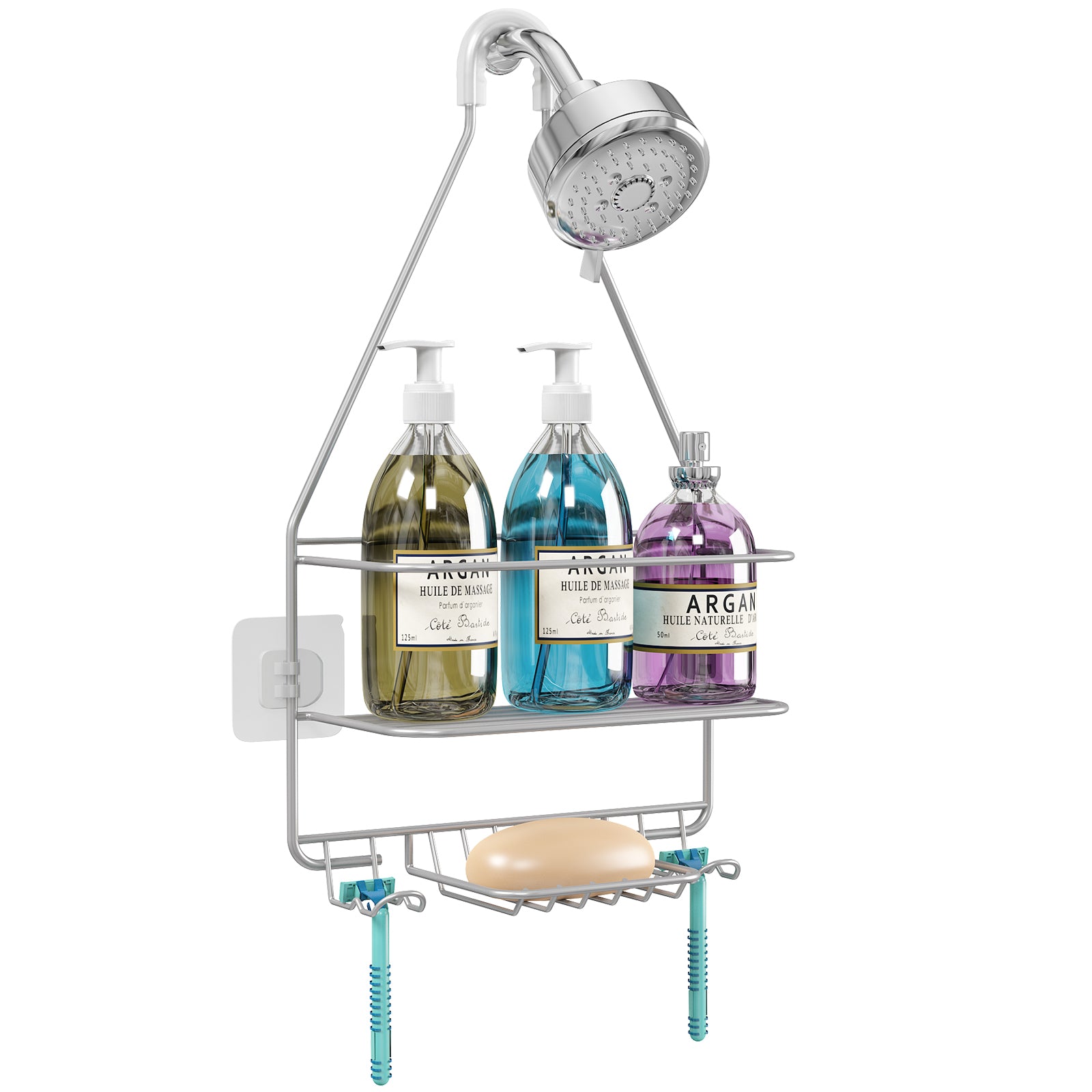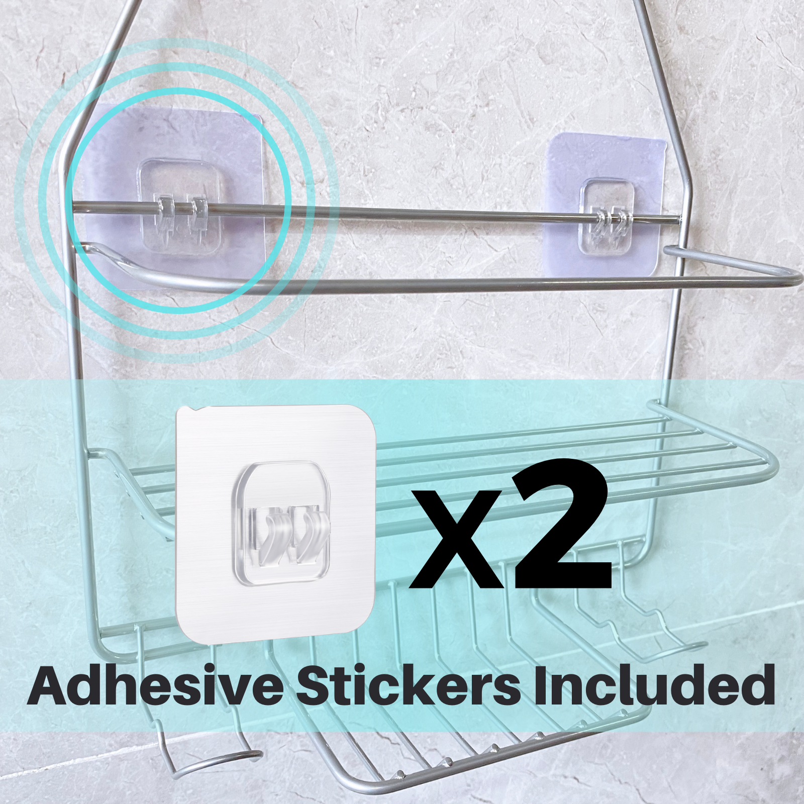 - 【No Installation & Rust-Free】 Simply hang the shower caddies over the shower head and secure the back of it to the wall with 2 stickers, without worrying about complicated hardware or surface damage. With silver coating finish, shower head caddy can resists moisture in shower stalls.