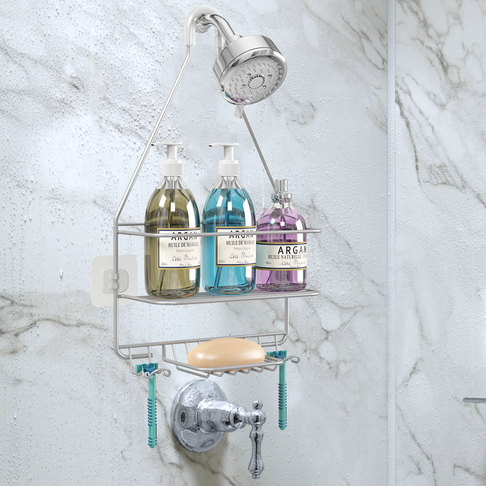 Shower Caddy Over Shower Head, Hanging Shower Organizer, Shampoo Rack and Soap Holder for Bathroom Storage, Silver