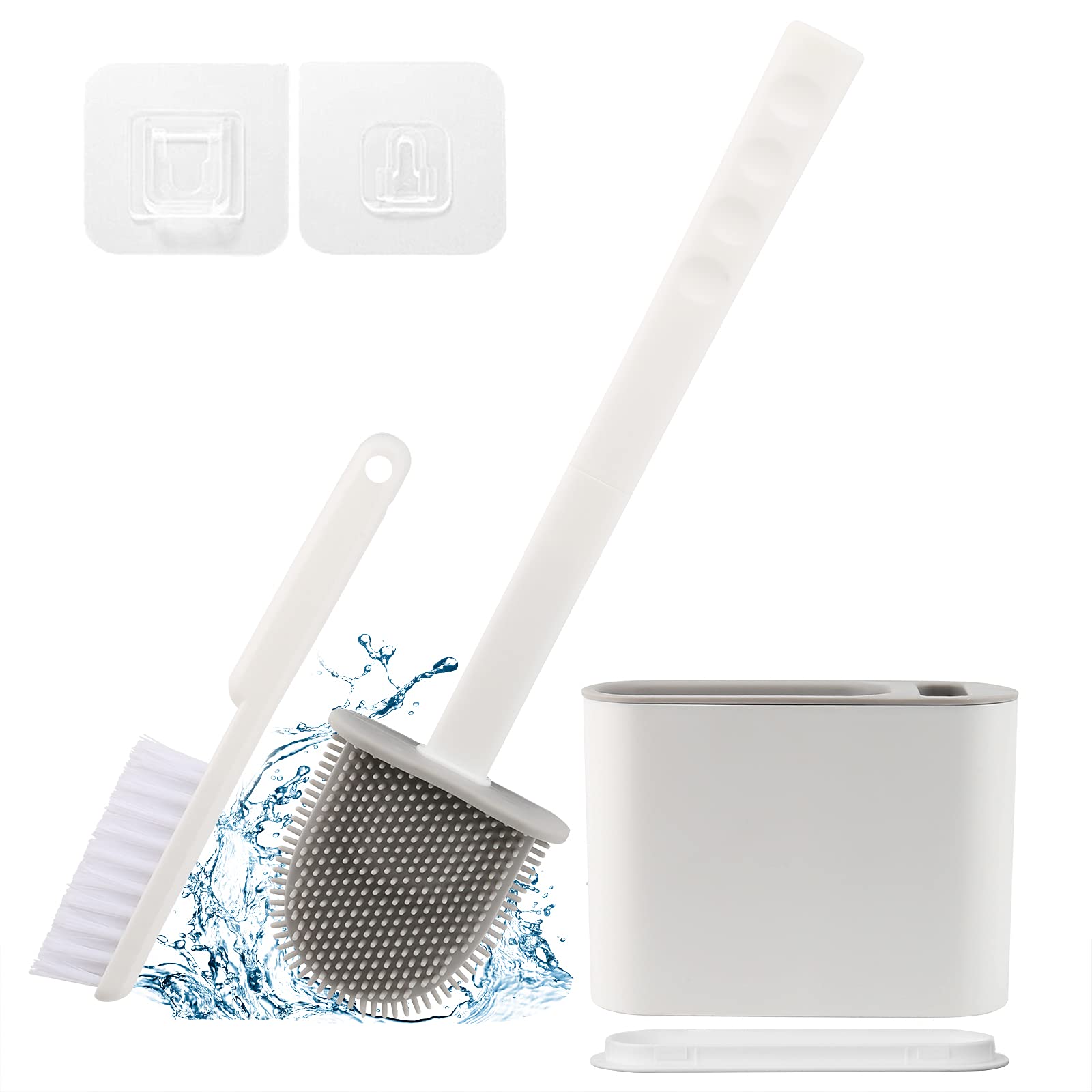 Silicone Toilet Brush,Toilet Bowl Brush and Holder Set with Small Brush for Deep Cleaning,Freestanding/Wall Mounted Toilet Brush Holder