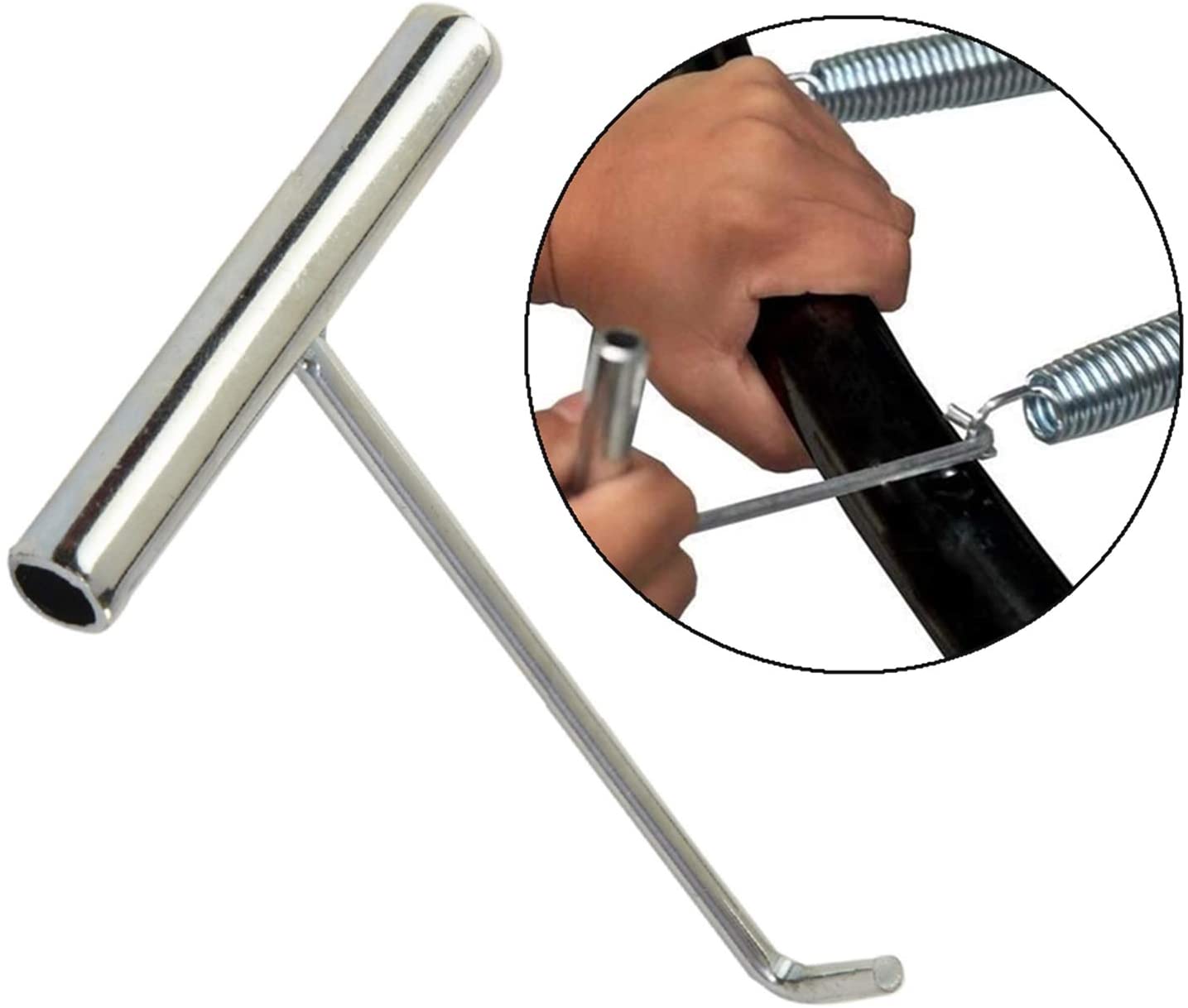 - Easily Install and Remove Springs - The spring tool helps you to slide springs onto the trampoline frame easily and quickly when installing your trampoline jumping mat. Save your fingers with these T-Hook! You can't go wrong.(Product size: 4 x 4inches)