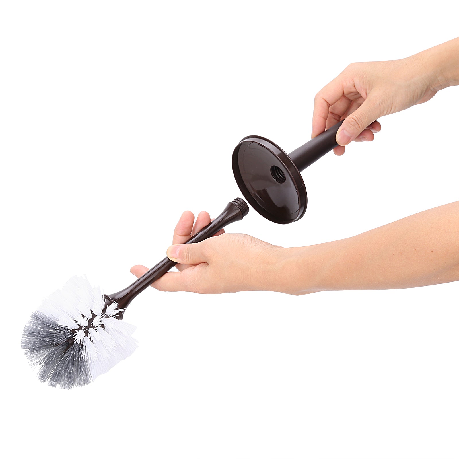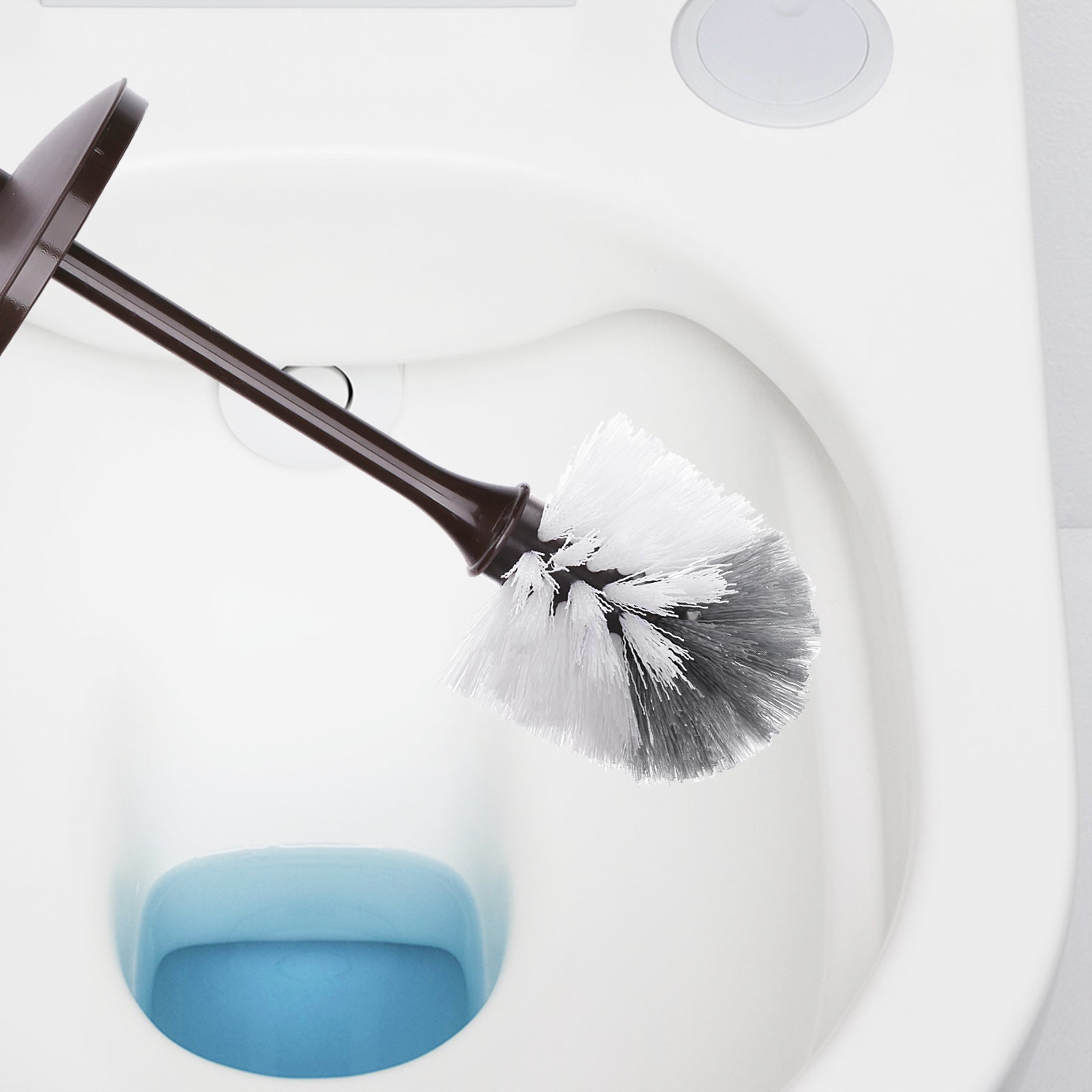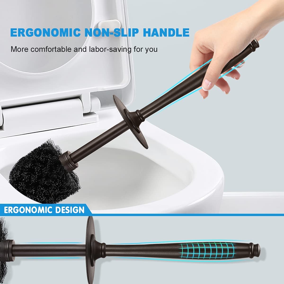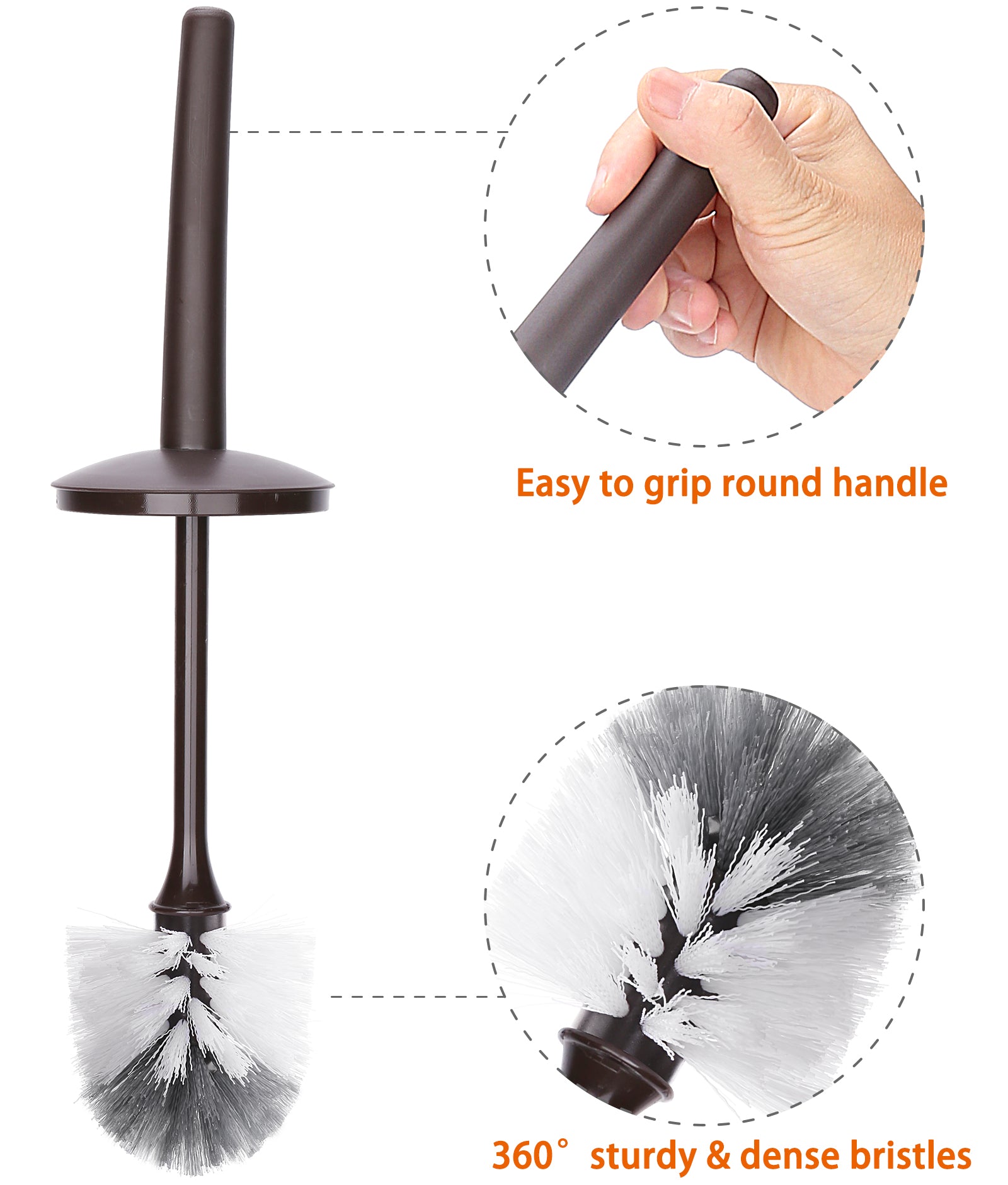 - 🚽Sturdy bristled brush deep cleans hard to reach places for a sparkling bathroom, Toilet bowl brush and holder with a simple design in durable bronze color plastic that effectively keeps the toilet clean.