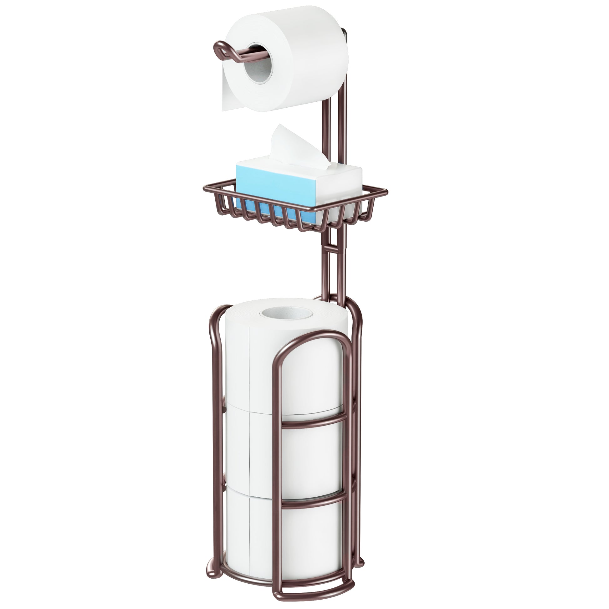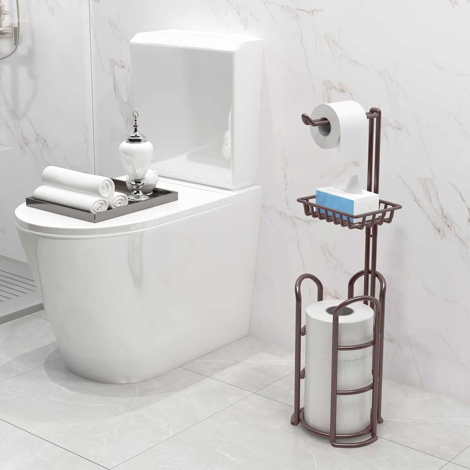 Toilet Paper Holder Stand with Reserve and Dispenser for 4 Mega Roll, Bathroom Freestanding Toilet Tissue Storage with Shelf for Wipes and Phone, Bronze
