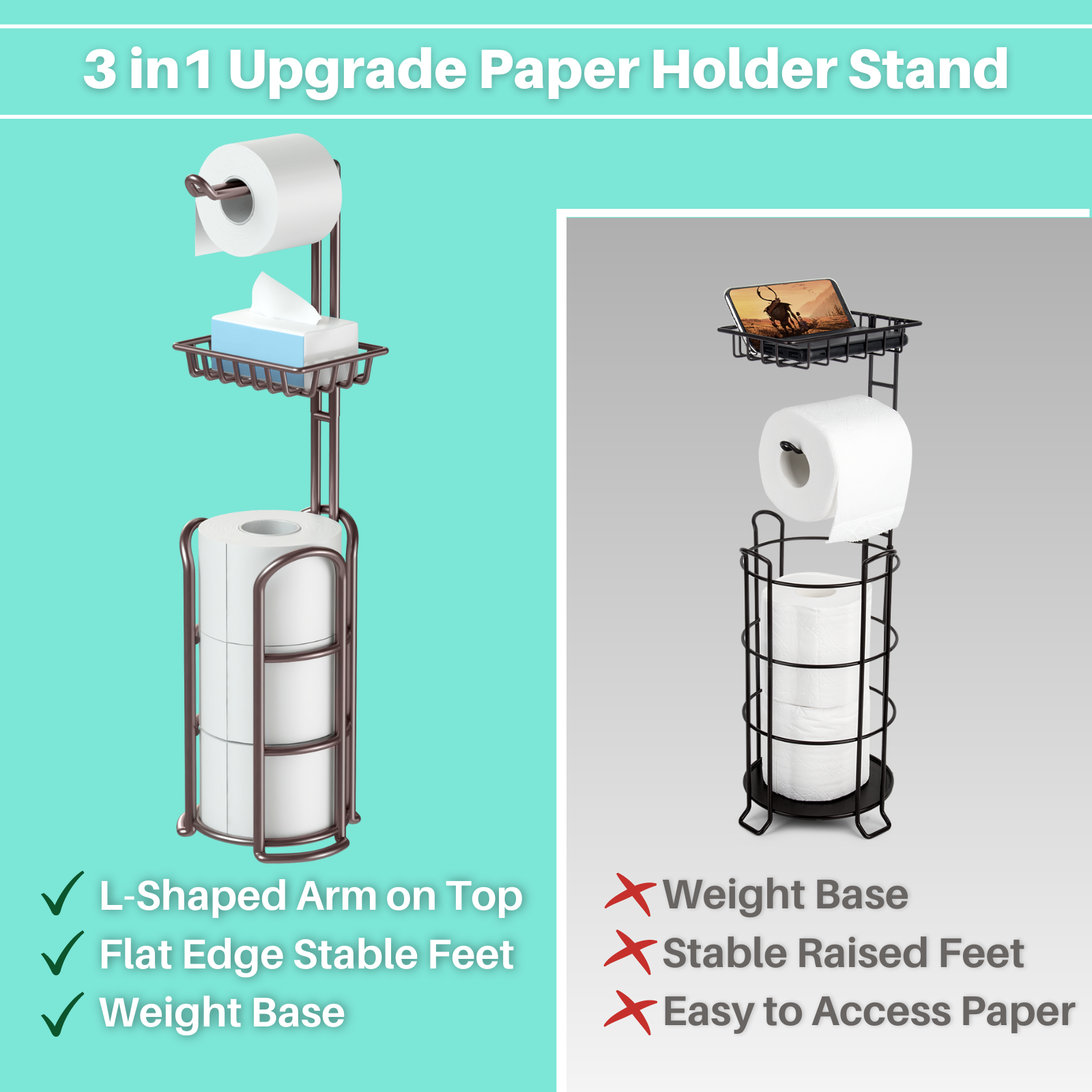 - 【Stable and Durable】3 flat-edged feet making this toilet paper roll dispenser stand sturdier than most 3-point contact models. The bottom is solid rather than open for better stability.