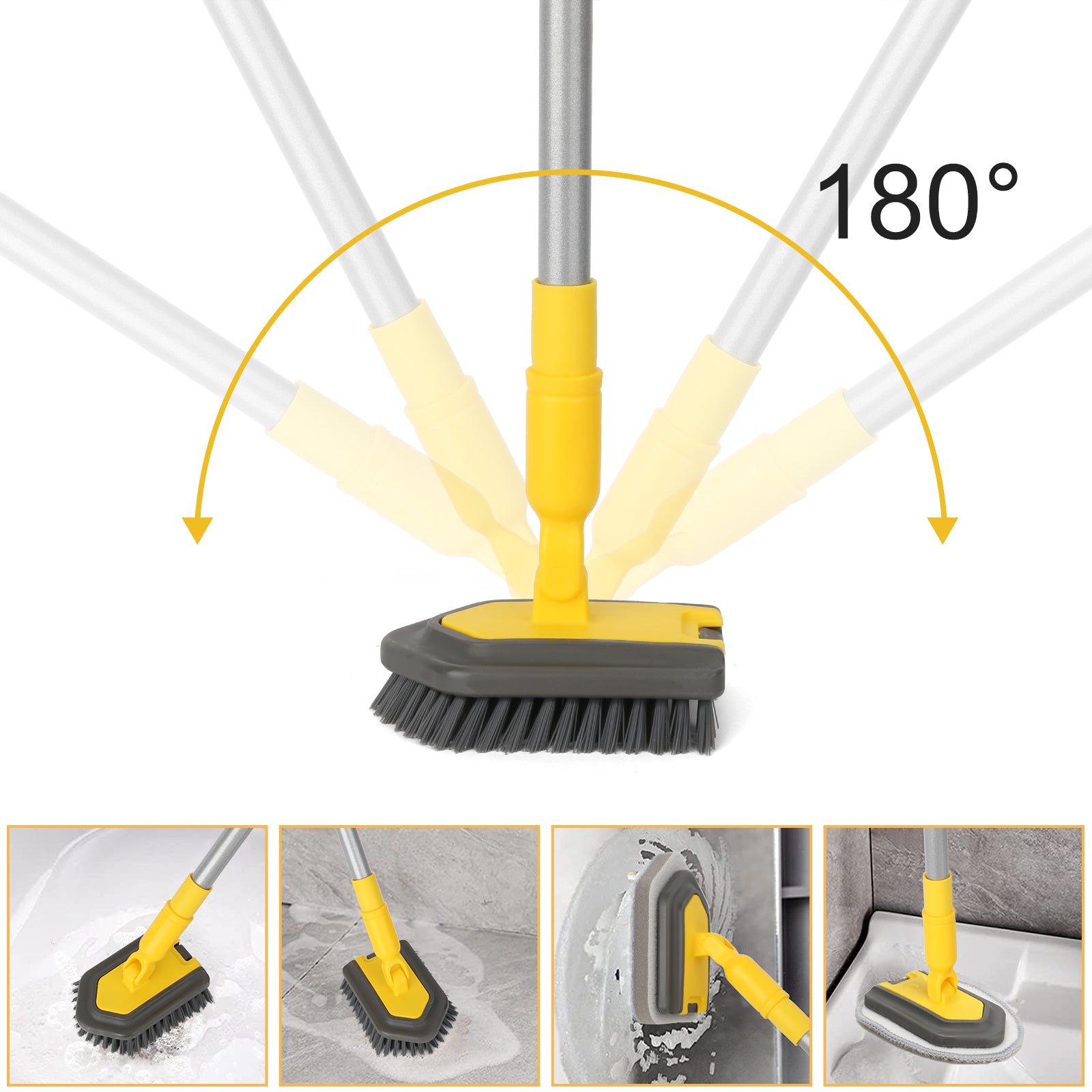 - 🌿180°rotation brush head- the shower cleaning brush with 180° rotatable design can easily solve the corners that are difficult to reach with ordinary brushes, providing the best angle for your cleaning work, and helps you clean corners and grooves easily and quickly,more convenient for those having back or knee issues