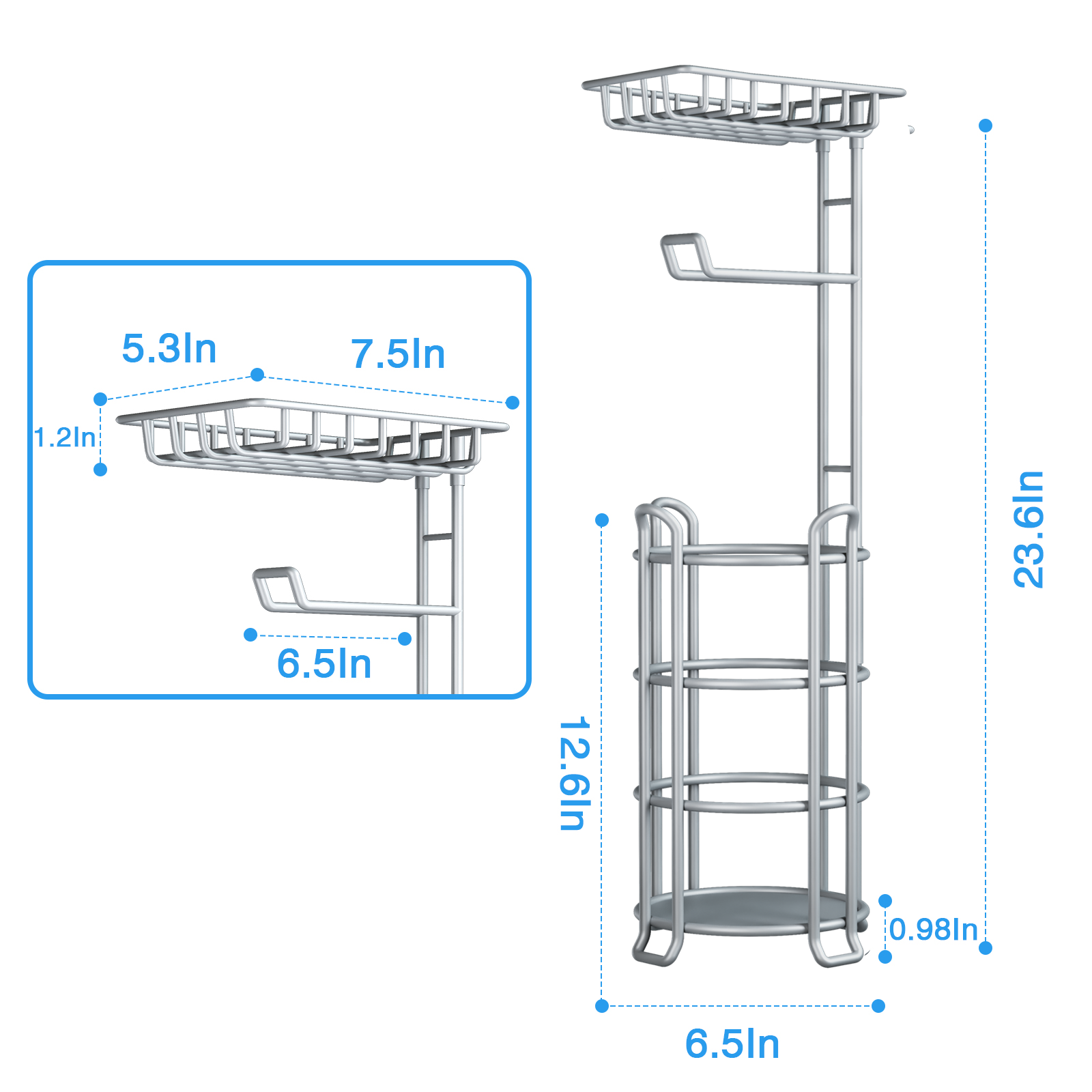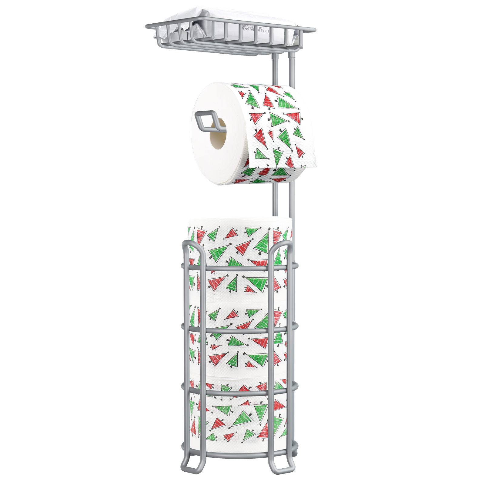 - 【Compact & Sleek Modern design】 Stand up toilet paper holder allows you to easily move it around and tucks it into any corner of your bathroom. Elegant silver gray finish adds décor to your bathroom and it won't rust or show stains, perfect for condo, camper, and RV bathrooms.